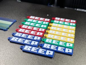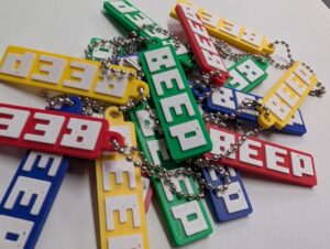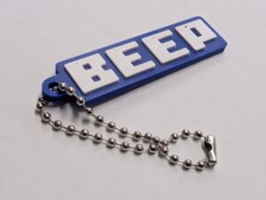 BEEPのロゴキーホルダーです。最近多色のプリントが可能な機材を買い足した為、試作してみたアイテムです。正直なんてことない代物ですが、単色より随分見栄えの良い物が作れるようになりました。こちらは熱溶解積層法という形式のプリント方法の機材を使っています。わかりやすくいうと溶かした樹脂をノズルから出して形を作り、それをミルフィーユの様に上に積み重ねていくことで立体物を作る方式です。(わかりにくいですね、すみません。)