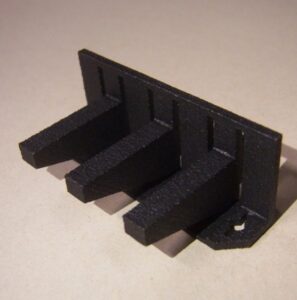 カプコンの基板が好きな人ならご存知であろうCPSIIマザーボードに搭載された3連スイッチの代替部品になります。ここのスイッチを押すためのプラスチックパーツは経年劣化で割れてしまうことがとても多いので、試しに作ってみた所予想以上に反響があったので販売することになったアイテムです。これは私が試作品を作った後に販売用として専門の業者に量産を依頼して、「レーザー焼結法」という方式の業務用大型3Dプリンターで作って頂いた物です。丈夫なナイロン系の素材を使い業務用の機材で作られているので仕上がりも綺麗で丈夫です。