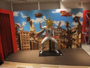 映画で使われた小道具や着ぐるみなどタローマン関係のアイテムが所狭しと展示されていました。