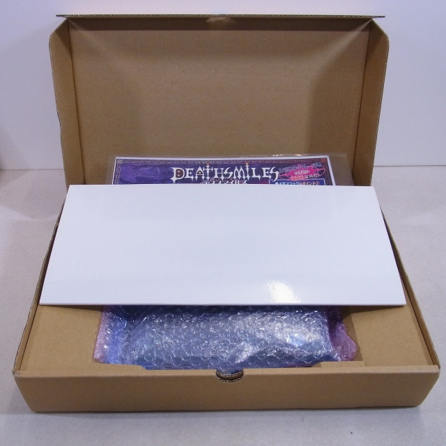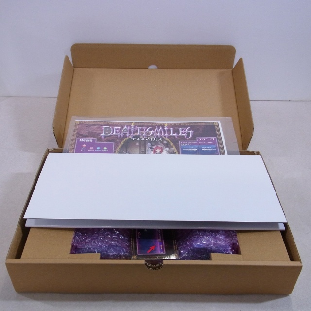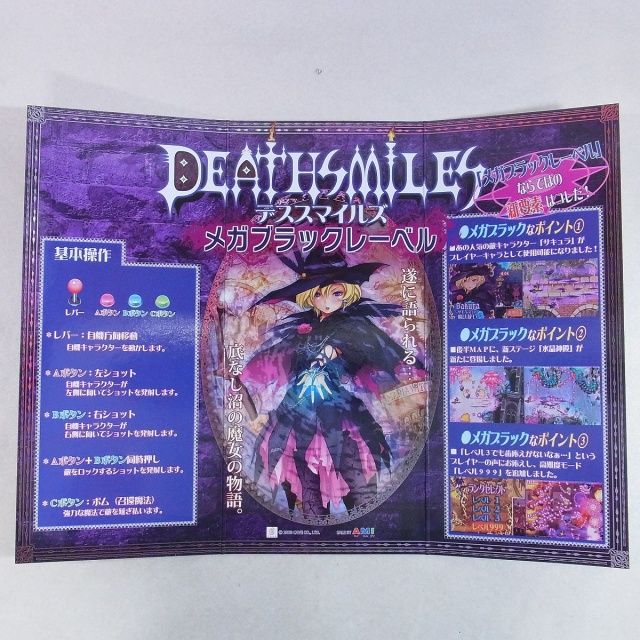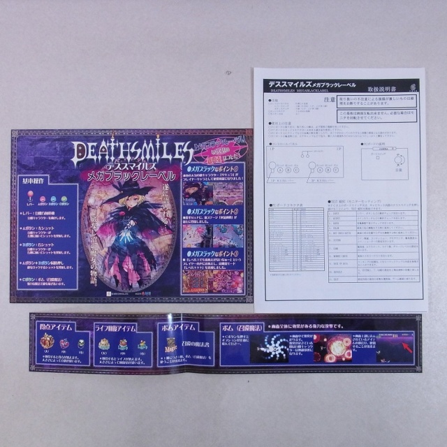 上記の「デススマイルズ」の別バージョン「メガブラックレーベル」です。追加キャラクターやステージの他、選択出来る難易度に上級者向けの「レベル999」が加わってさらにパワーアップした内容になっています。販売数は公表されていませんが、その後も中古の市場ではほとんど出回りがなく、初代よりも数は格段に少ないと言われているケイブシューティングでも入手が難しいタイトルです。さらにこちらの商品も状態の良い箱と付属品が全て揃っており、ショップに入荷する事自体がかなりレアなアイテムです。