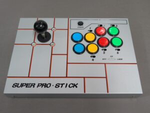 そしてこちらが専用コントローラーのΣ9000TBです。今風のアケコンとは違い無骨な四角い板といった風貌ですが、実はこちらもシリーズで熟成を重ねたかなり優秀なアーケードゲームにピッタリのコントローラーです。適度な重さがありかなり薄く低重心なフォルムなので見た目より安定しています。6ボタン独立のボリューム式連射装置付き。連射の固定/解除もスイッチで行えます。