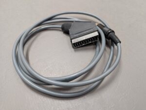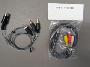 本来はRCA端子のビデオケーブルが付属しているんですが、この買取品には付いていなかったため、穴場開発事業団製のAVケーブルを付属する予定です。このケーブルがあれば家庭用のテレビのビデオ出力で画面が出せますので手軽に使用出来ます。本格的に綺麗な画像でプレイしたい方向けにアナログRGB用のRGB21ピン用のケーブルも付いています。(本来は別売り品です)HDMI等のデジタル規格には対応していないので各種映像コンバーターやマイコンソフト社のXRGBシリーズ等のアップスケーラーユニットが別途必要になります。