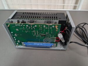 本体の外装を外すと中はこんな感じです。各種コネクタが装備されたメイン基板の他は内部の大半を電源ユニットが占めています。