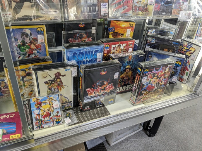人気のザ・キング・オブ・ファイターズシリーズもショップにここまで一度に揃う事はなかなか無いんじゃないでしょうか。こうして見るとネオジオは本当に幅広いジャンルでタイトルが出ているんですね。この中に皆さんの推しゲーは入っていますでしょうか? 私のイチオシはネオドリフトアウトなんですが、残念ながらこの中にはありませんでした…。