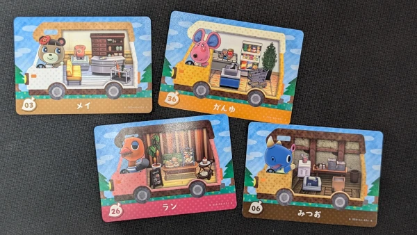 前作『とびだせ どうぶつの森』時代に展開された「amiibo+」カードは、住民がキャンピングカーに乗っている横向きのイラストが特徴です。